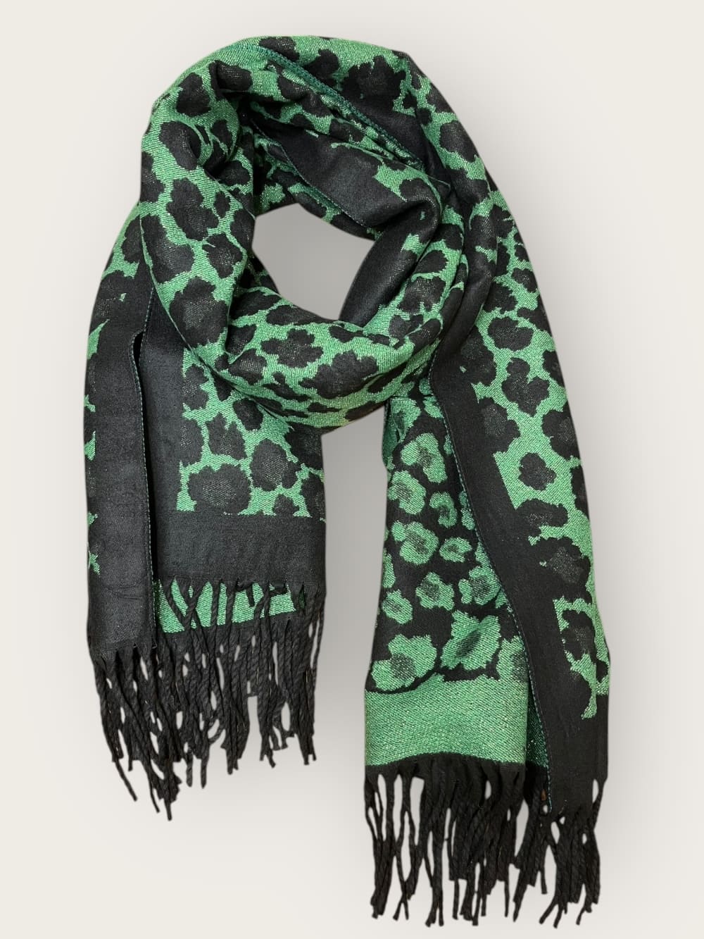 Dieser Viskoseschal in ausdrucksstarkem Grün-Schwarz mit Animalmuster ist ein absoluter Hingucker. Die weiche Qualität schmiegt sich angenehm an, während die Fransen dem Design eine lässige Note verleihen. Ein modisches Accessoire, das jedem Outfit sofort Frische und einen Hauch Extravaganz verleiht und Dich stilvoll durch die kalte Jahreszeit begleitet.