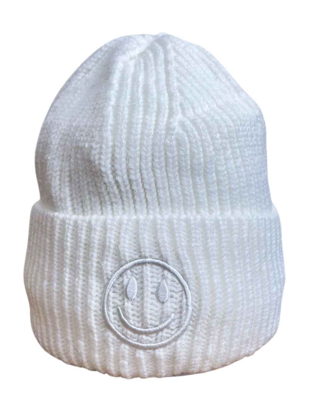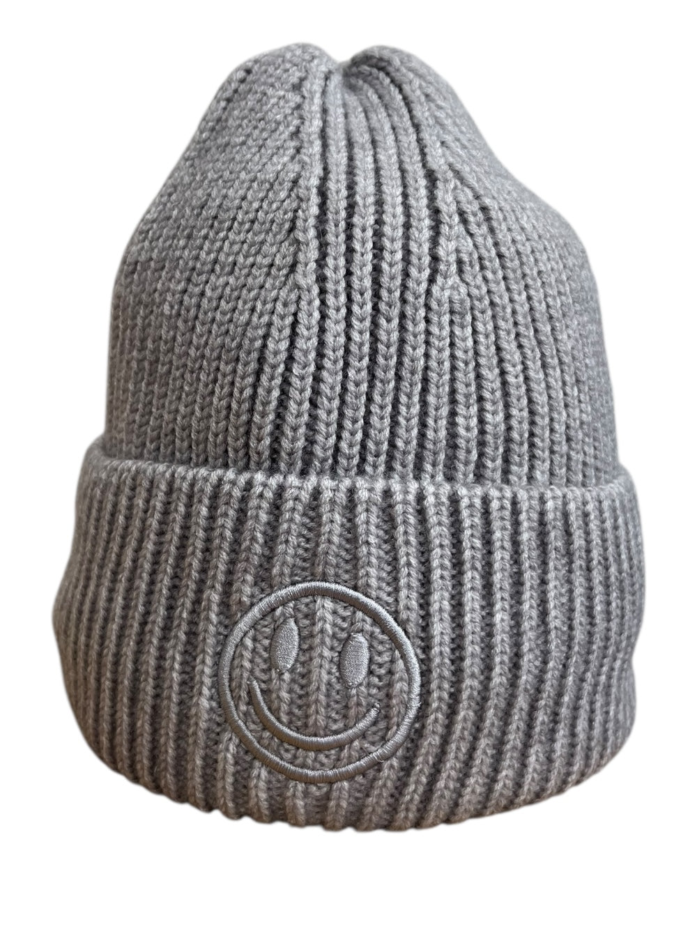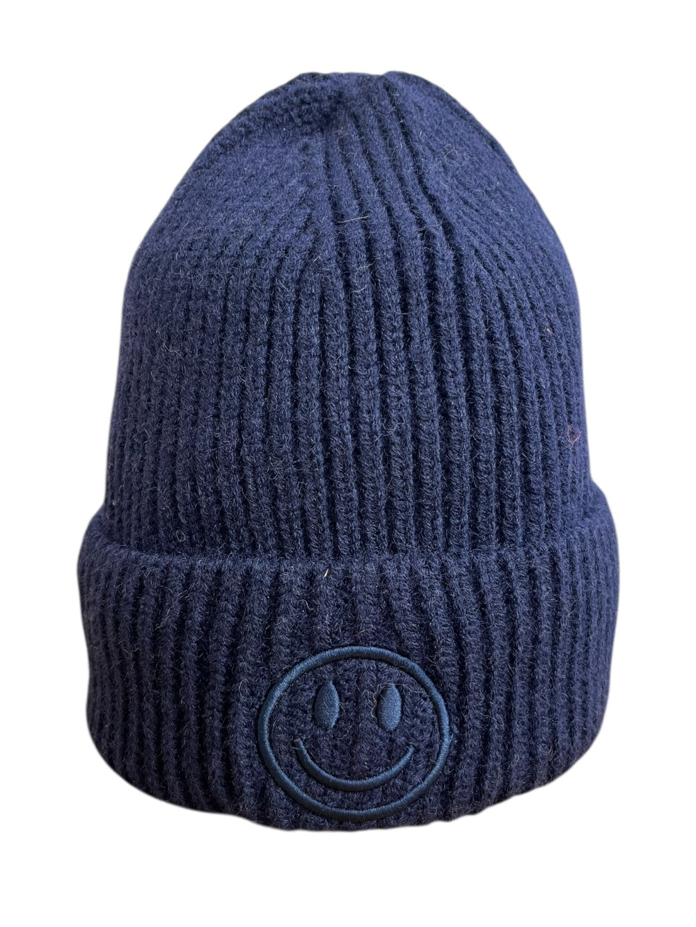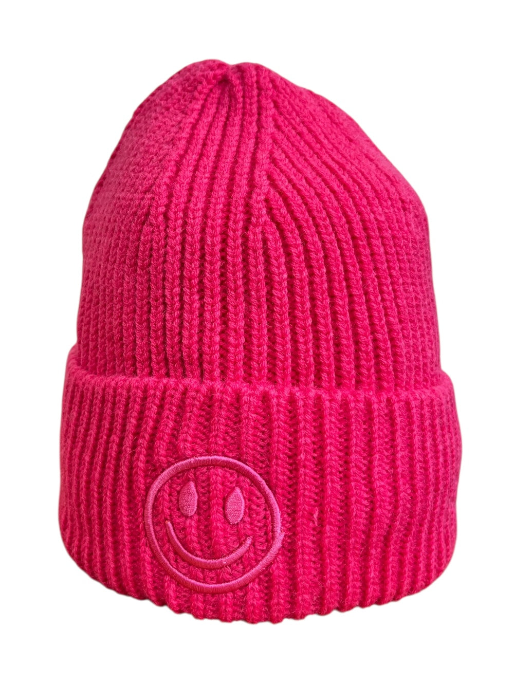 Kuschelweiche, stylische Mütze mit breitem Aufschlag und Smiley-Stickerei. Besonders warm durch Fleecefutter innen.