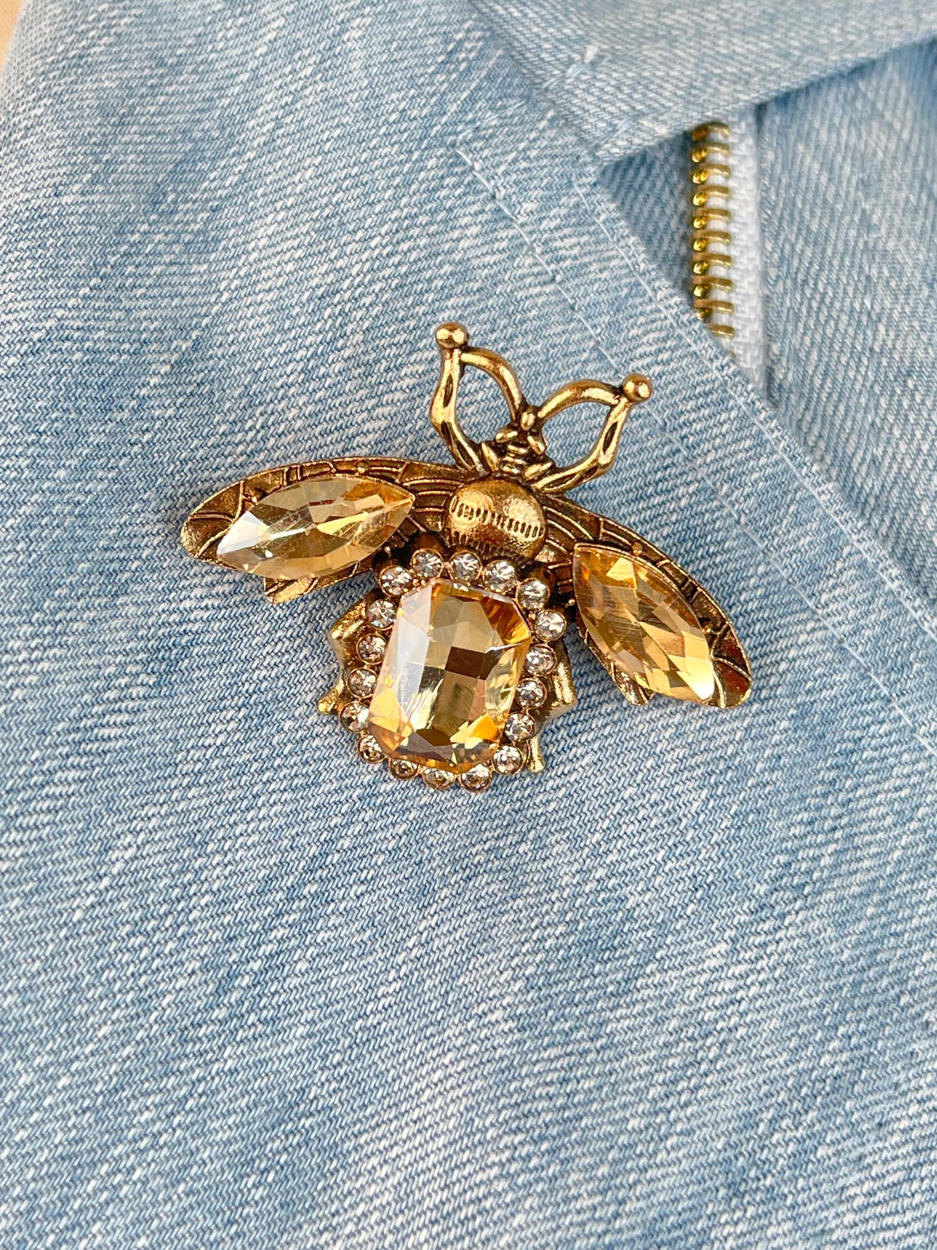 Ein besonderes Highlight ist die abnehmbare Zierbrosche in edler Insektenform mit funkelnden Steinen, die der Jacke eine elegante Note verleiht. Je nach Styling kannst du sie glamourös tragen oder die Jacke ganz clean wirken lassen.