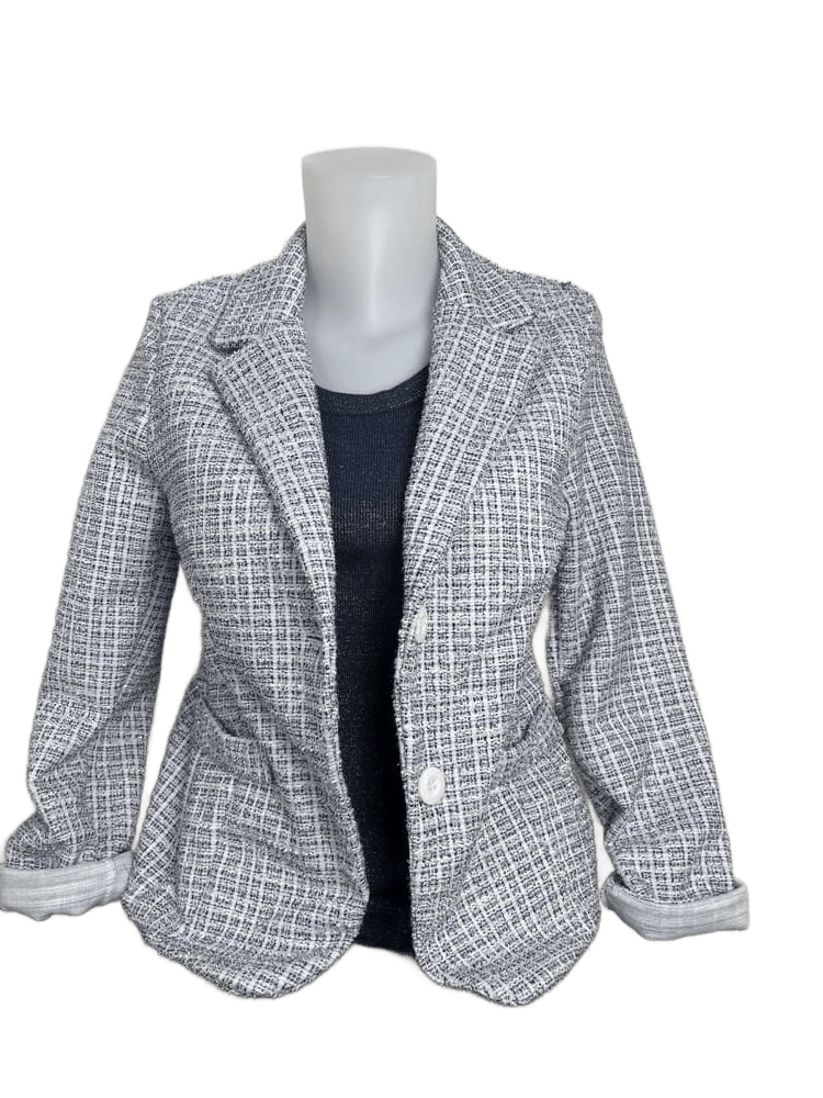 Erlebe den ultimativen Style mit unserem Karoblazer mit Glanzgarn! Der angesagte Jerseyblazer verleiht jedem Outfit einen Hauch von Eleganz. Durch das glänzende Garn wird er zum absoluten Hingucker.