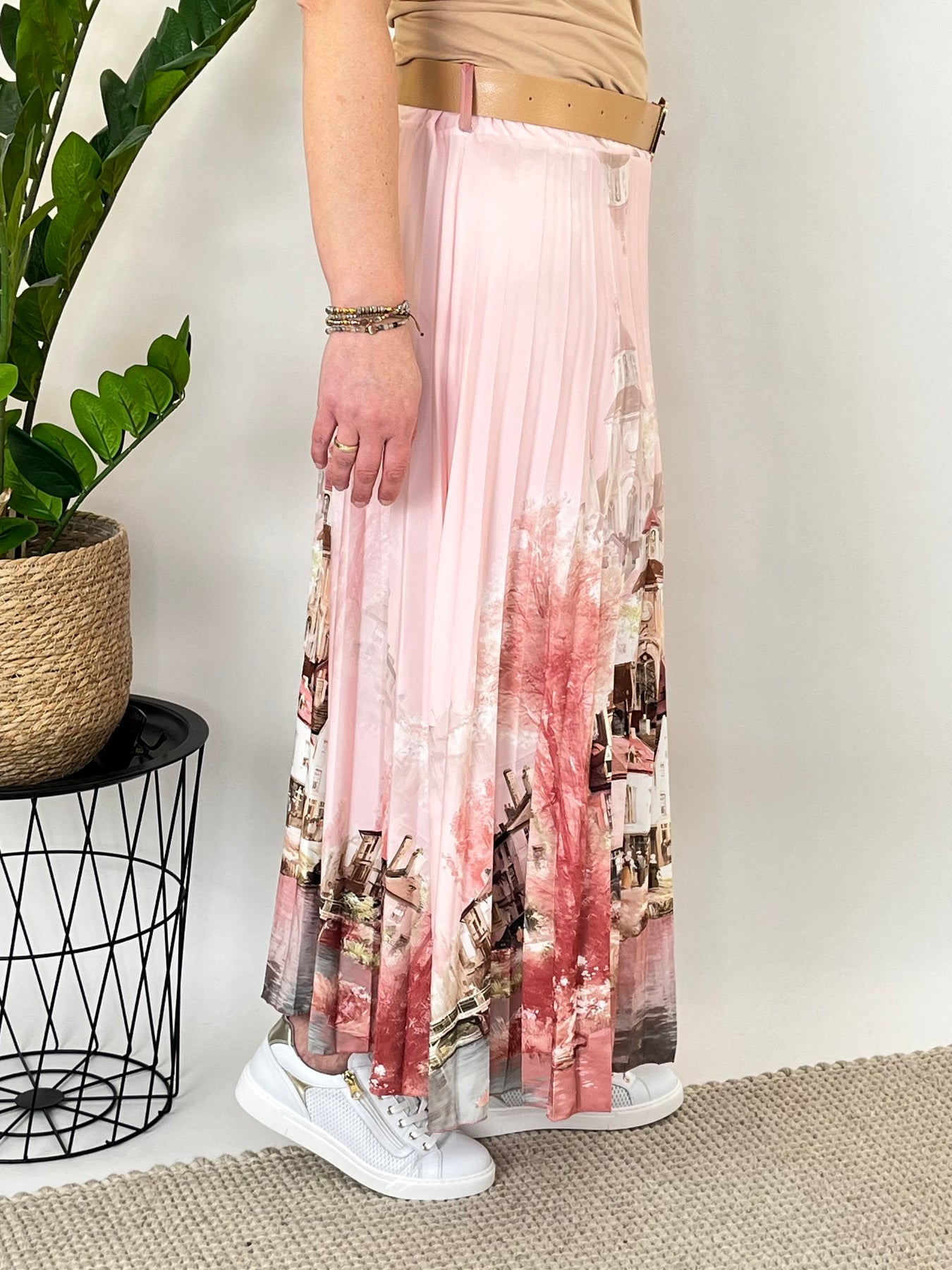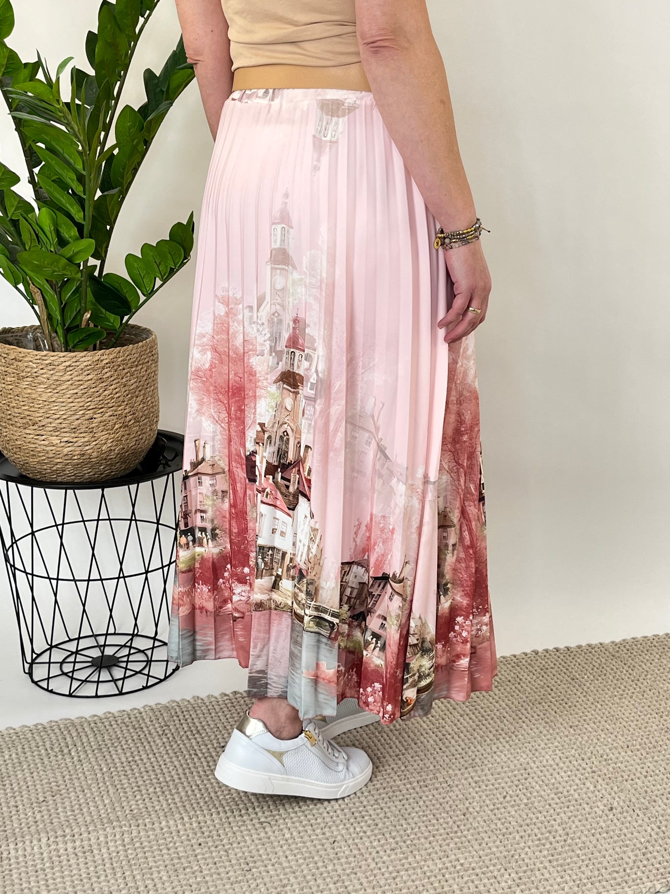 Dieser Plisseerock begeistert mit einem stimmungsvollen Landschaftsprint, der dem Look eine besondere Tiefe und feminine Eleganz verleiht. Die feinen Plisseefalten sorgen für einen schönen, fließenden Fall und eine leichte Bewegung bei jedem Schritt. Der dezente Farbverlauf unterstreicht die weiche, harmonische Optik des Designs.