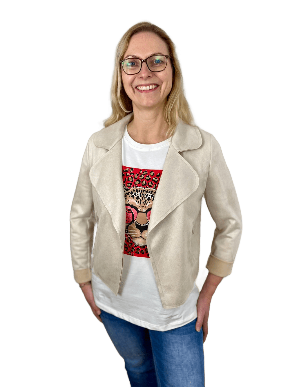 Bluse mit weitem Stehkragen und 3/4-Arm