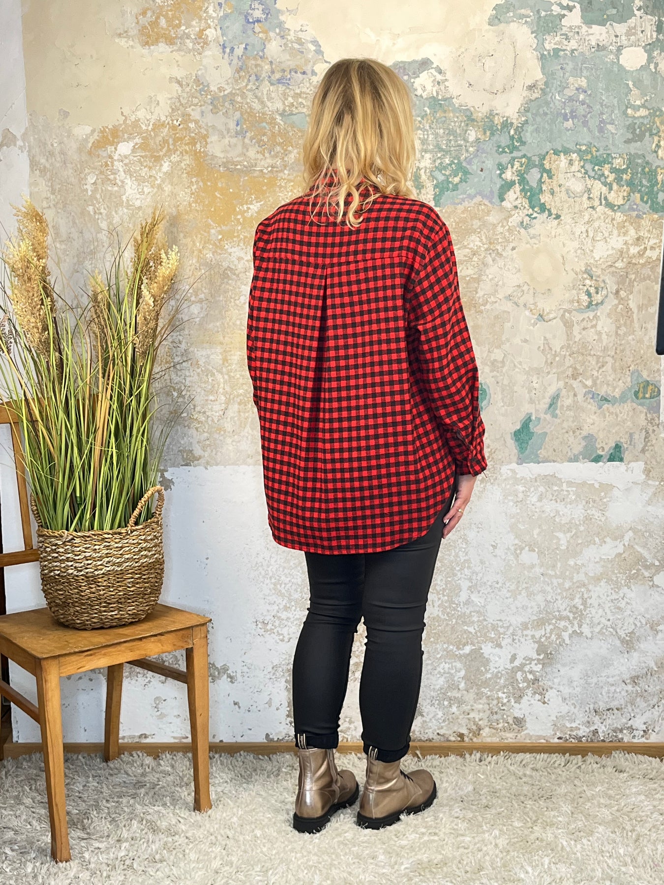 Weich, warm und stylisch – dieses Flanellhemd im klassischen Karo-Design ist ein echter Allrounder. Die abnehmbaren Zierelemente an der Brusttasche sorgen für einen individuellen Look und können je nach Anlass ganz einfach entfernt werden. Die längere Rückenpartie und die lockere Passform machen das Hemd besonders angenehm zu tragen – perfekt zu Jeans oder Lederleggings.