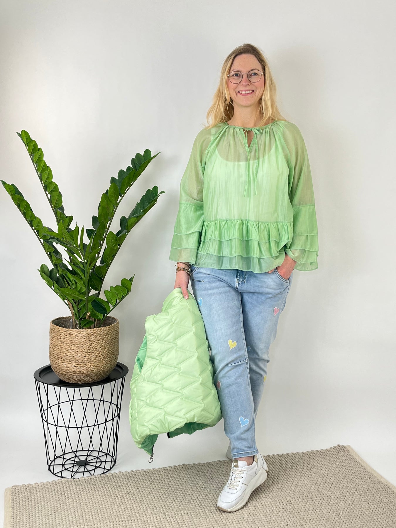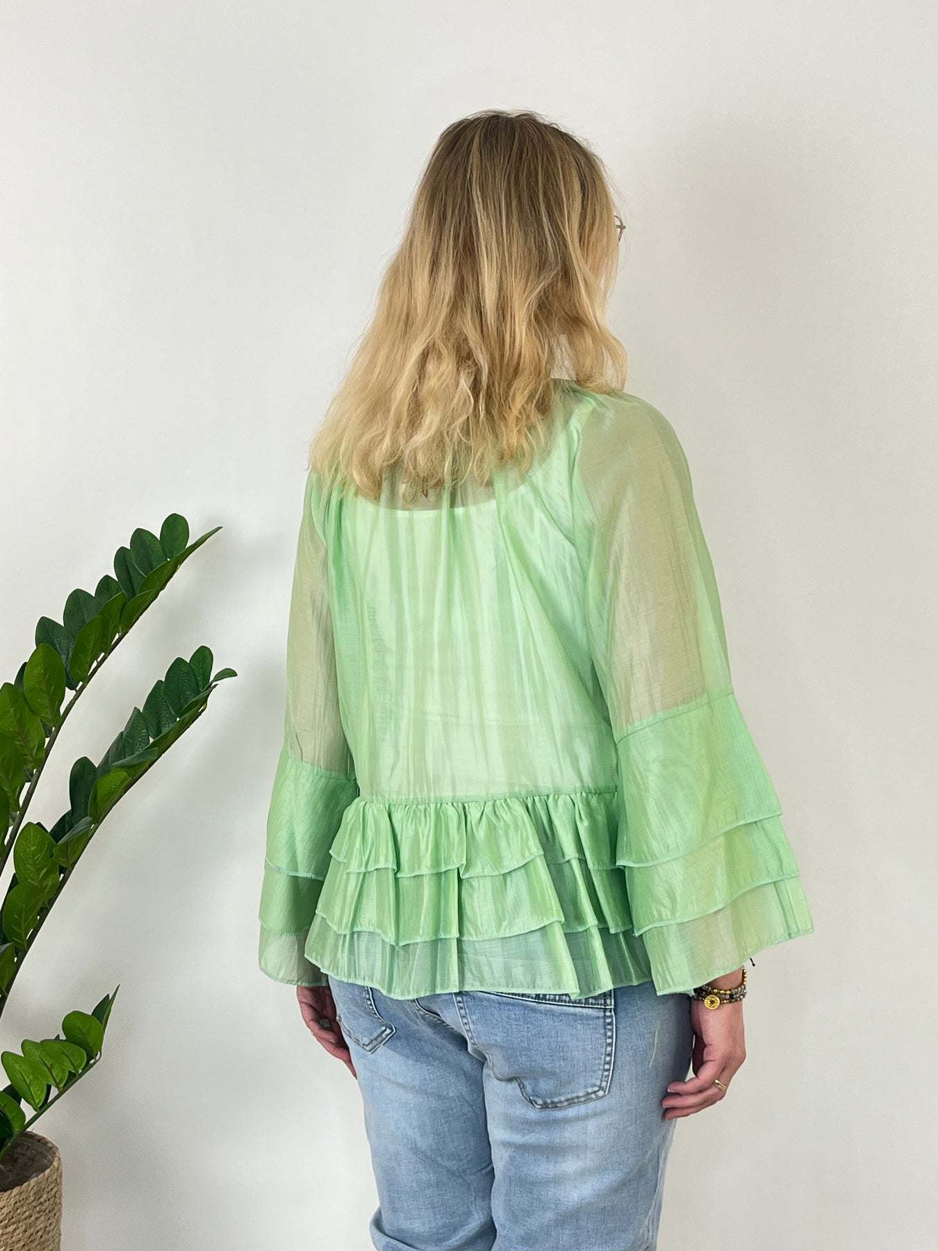 Luftige Tunikabluse mit Volants, hellgrün
