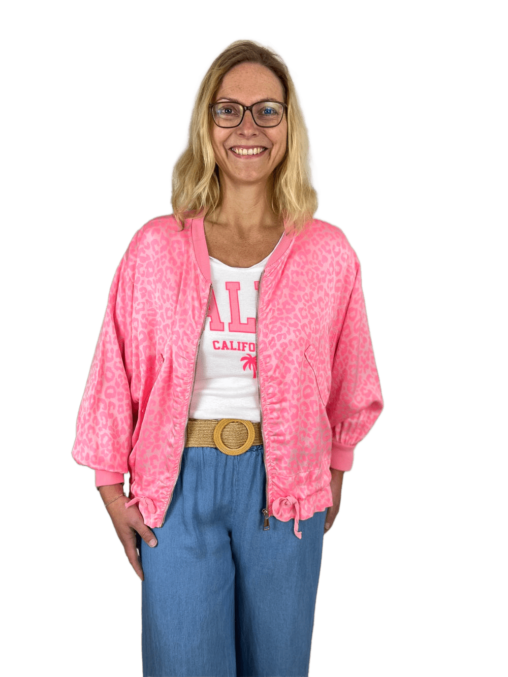 Erlebe den Wow-Effekt mit diesem glänzenden Satinblouson mit Leomuster! Die sportlichen Rippbündchen an Arm und Kragen verleihen eine lässige Optik. Mit Kurzarm und Reißverschluss ist sie perfekt für jeden Anlass. Der Tunnelzug am Saum sorgt für eine individuelle Passform. Verpasse Deinem Look einen Hauch von Lässigkeit und Eleganz!