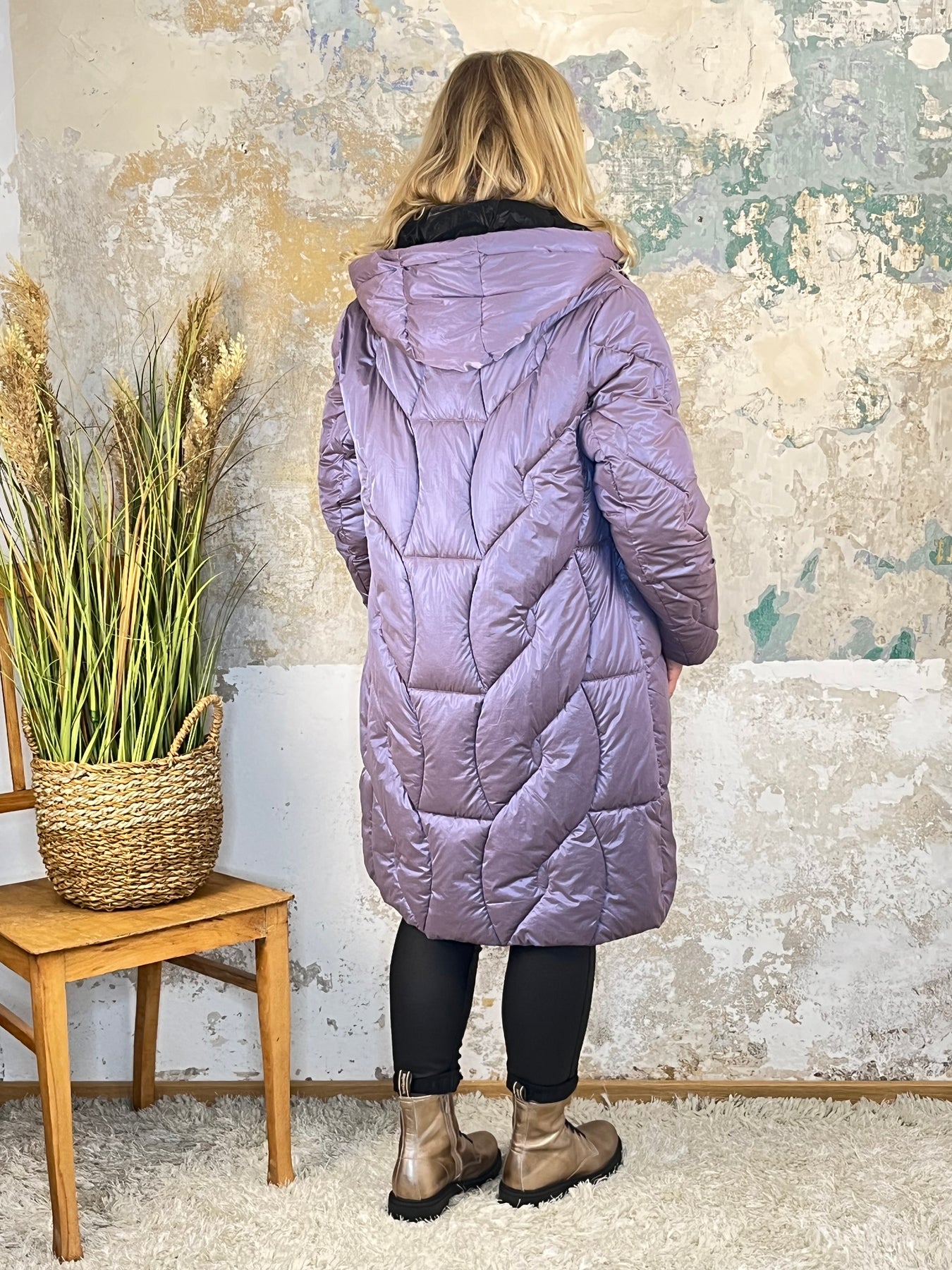 Steppmantel in einem zarten Fliederton mit abnehmbarer Kapuze und toller Steppung. Der Clou ist das kontrastfarbige Innenfutter und der leicht changierende Stoff. Mit 2-Wege-Reißverschluss und 2 Reißverschlusstaschen vorne. Die Kapuze ist mittels Reißverschluss abtrennbar und somit wird der Mantel zu einem Stehkragenmodell. Innenliegende, elastische Bündchen am sorgen dafür, dass keine Kälte eindringt.