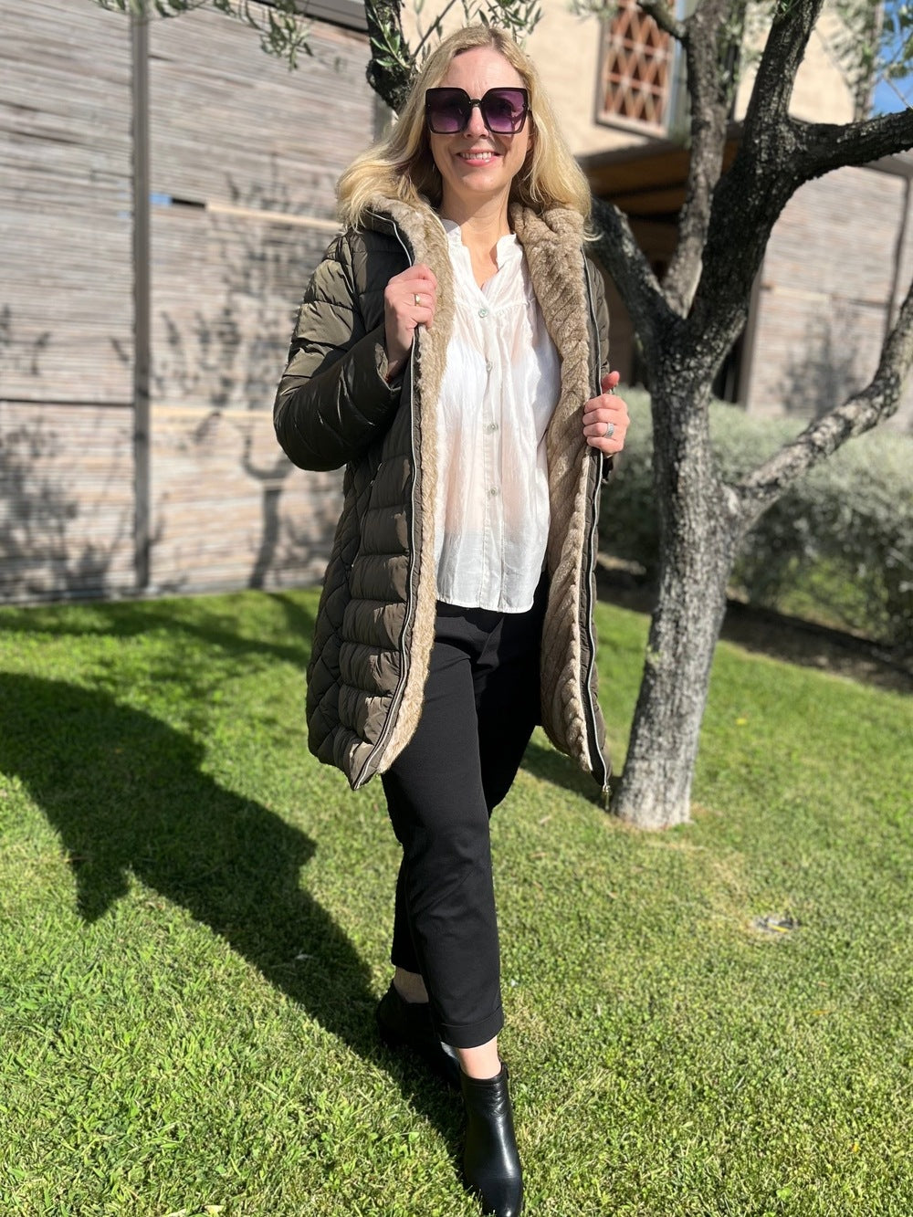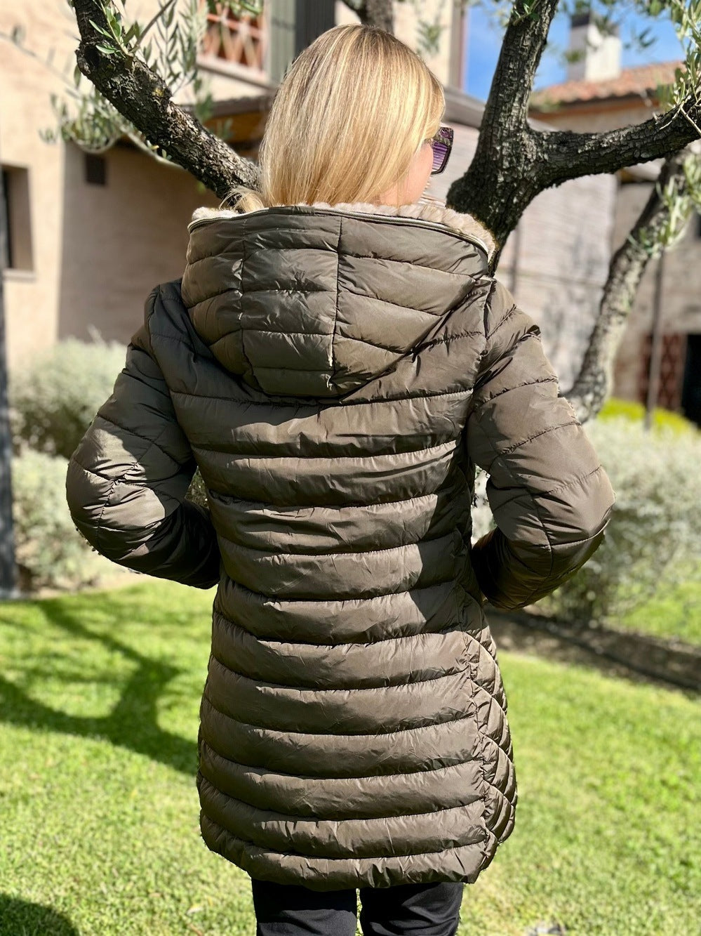Dieser Steppmantel ist der perfekte Begleiter für die kalte Jahreszeit. Das weiche Fellimitat im Innenbereich sowie an der Kapuze sorgt für kuschelige Wärme und hohen Tragekomfort. Der praktische Zwei-Wege-Reißverschluss und die seitlichen Taschen mit Zipper machen den Mantel nicht nur bequem, sondern auch funktional. Dank der abgesteppten Partien entsteht eine feminine Silhouette, während die Kapuze zusätzlichen Schutz an kühlen Tagen bietet.