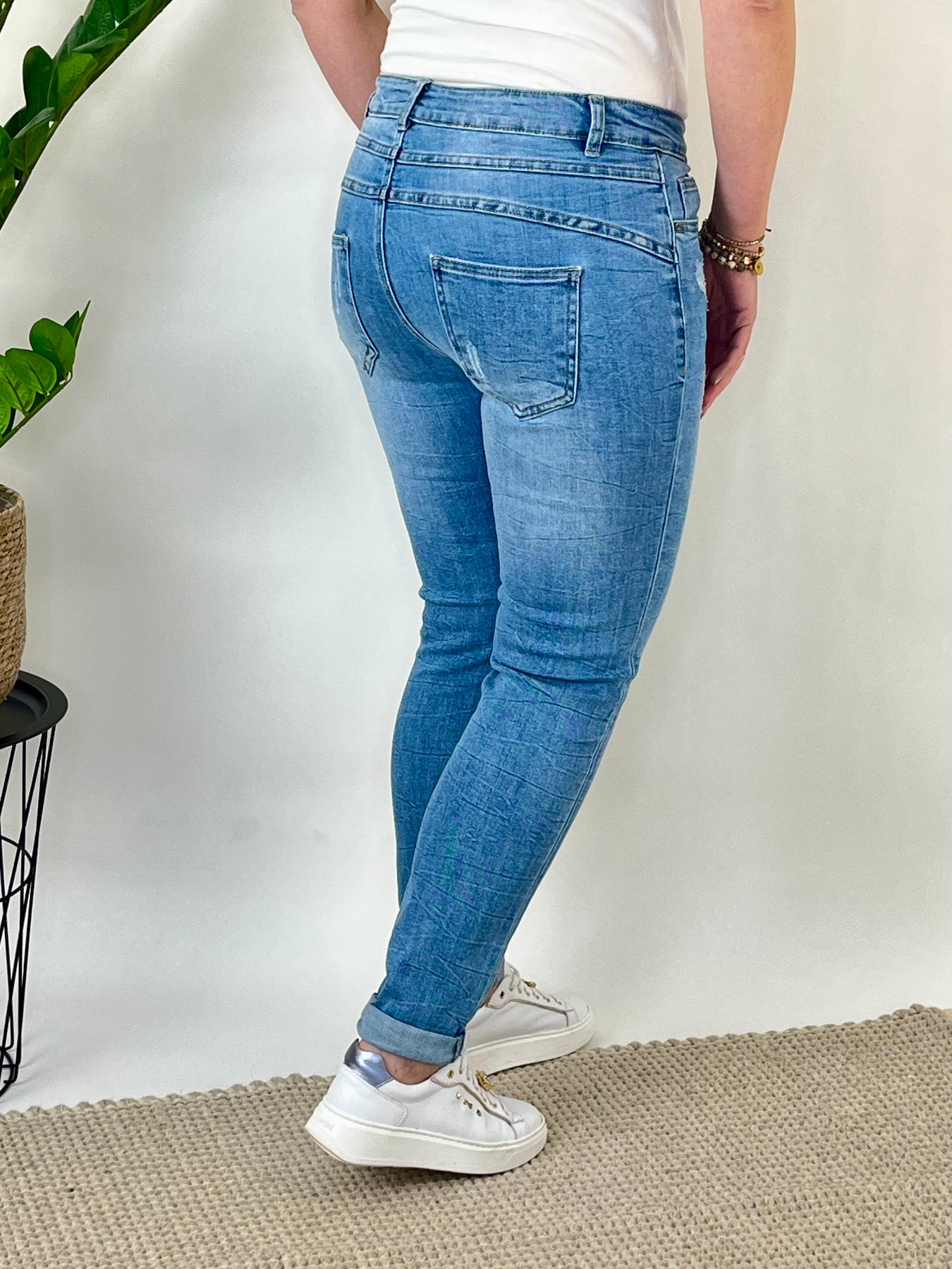 Der schmale Beinverlauf sorgt für eine feminine Silhouette und macht die Jeans zum perfekten Begleiter für viele Looks. Ob sportiv mit Sneakern oder elegant mit Bluse und Loafern gestylt – diese Jeans lässt sich vielseitig kombinieren und gehört definitiv zu den Lieblingsstücken im Kleiderschrank.