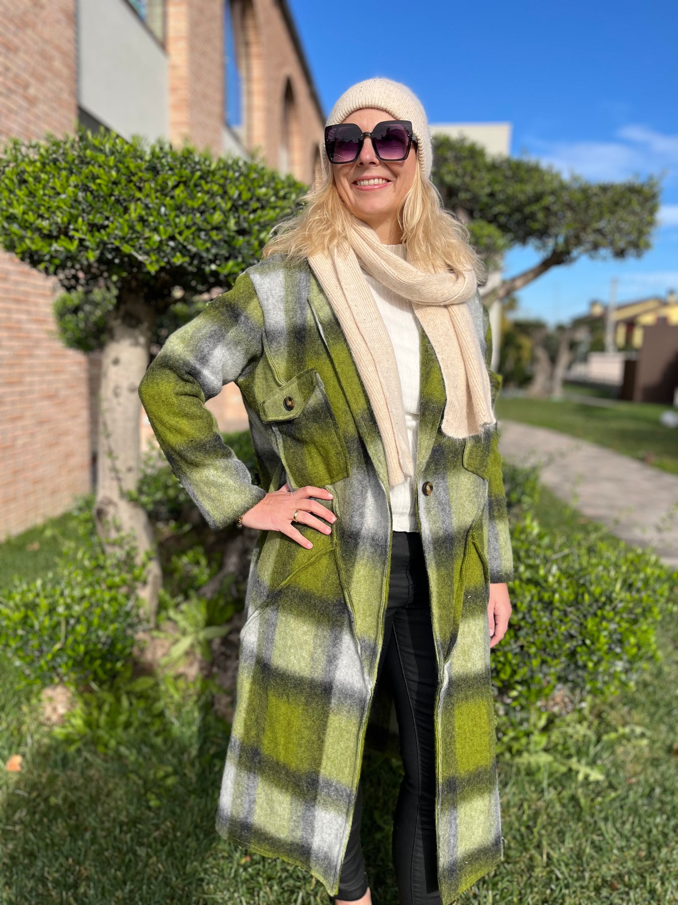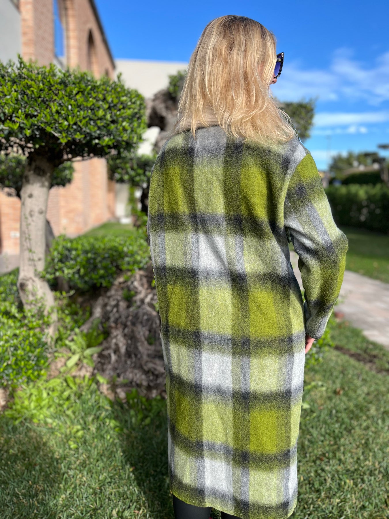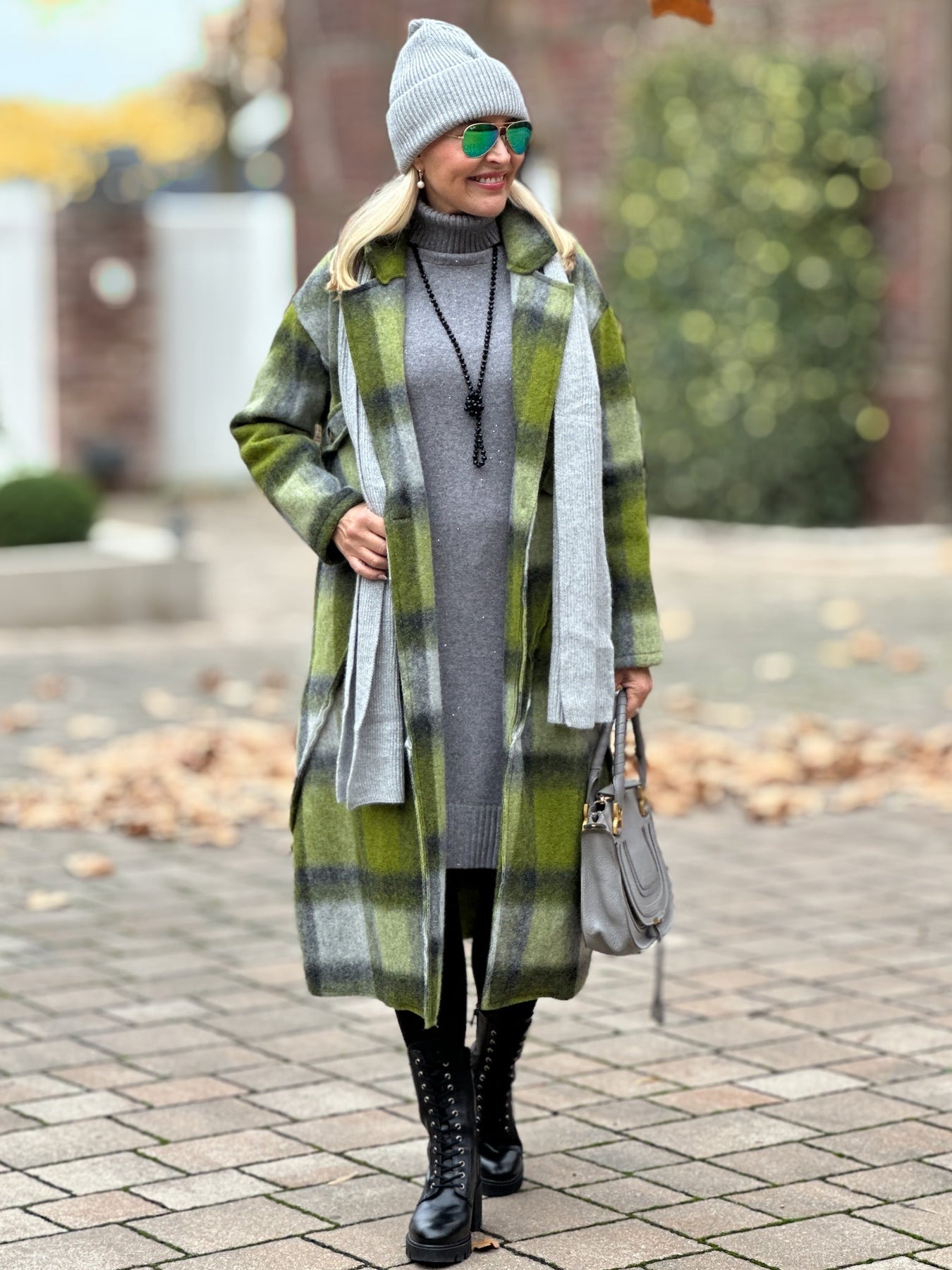 Dieser weich fallende Mantel besticht durch sein ausdrucksstarkes Karo in Grün-, Grau- und Schwarztönen und verleiht jedem Outfit sofort einen modernen, frischen Look. Die legere, ungefütterte Verarbeitung macht ihn besonders angenehm zu tragen und ideal fürs Layering.
