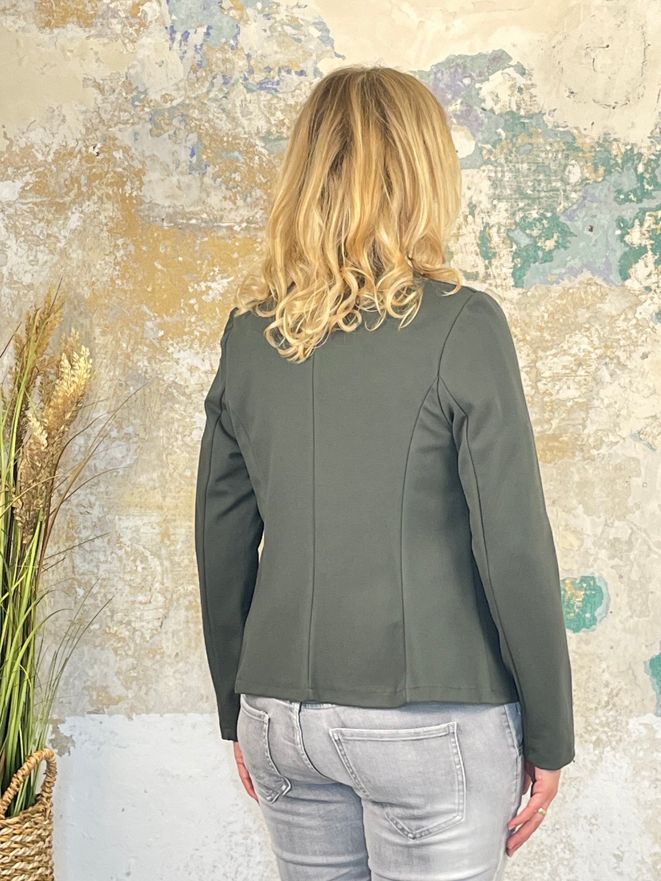 This blazer in soft jersey perfectly combines elegance and comfort. Thanks to the stretchy material, it offers optimal freedom of movement and a great fit. With a classic notched lapel, single-button closure, and shaping seams, it looks both feminine and modern. Ideal for business, leisure, or as a stylish contrast to jeans.
