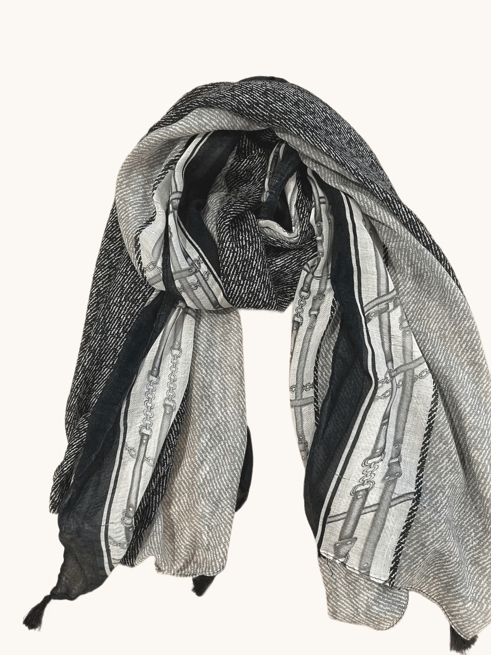 Sciarpa leggera e ariosa in pura viscosa con pompon decorativi all'estremità.